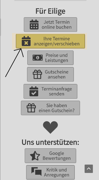 Haben Sie noch unsere E-Mail? Dort können Sie ebenfalls „Termin ändern“. Siehe Hilfe über diesem Text.